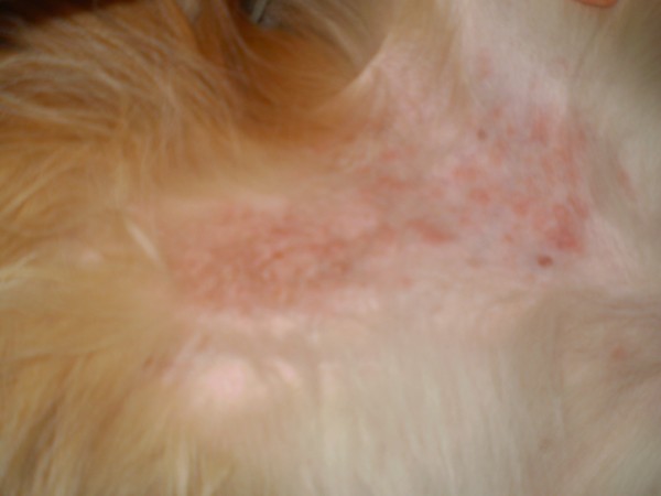 He had red sores and then scab things on his back