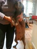 Yep! With her coat most of the photos she does not look that big but in reality she has a substantial bulge on either side of her body. The poor thing is so uncomfortable and my sleep is already lacking with middle of the night toilet breaks required every 1.5 - 2 hours and then it takes her 30 mins to settle down again. She is struggling to eat much. I tried to give her 3 not very big chicken wings earlier and that would normally be nothing. She scoffed the first 1, ate the second 1 slowly and when I handed her the third she took it and stood there with it in her mouth looking at me then tried to eat it but brought it up.