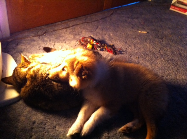 SezzNJunebug Posted July 13, 2011 Share Posted July 13, 2011 Definitely! Juno has been infatuated since he first showed up where he had to take his time to suss out her size! He has been curious about Juno from day 1 though. It is so special watching their relationship blossom They are only a few months apart in ages and it gives me warm fuzzies knowing that they will grow up together. Last night Juno and Spats were lying on the mat taking turns licking each others faces. Very very cute! Naw Saxon and Kitty love! I guess your cat tends to get a wet head too then! It's a hard one but there is something about a cat and dog snuggle that makes me go extra gooey!! Link to comment Share on other sites More sharing options...