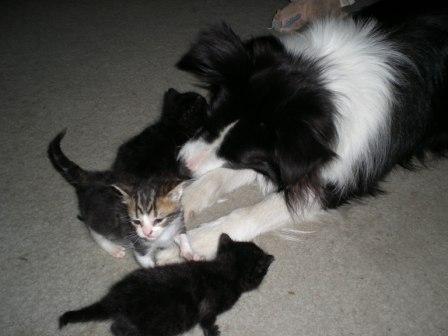 Tassie Posted July 14, 2011 Share Posted July 14, 2011 My 'border collie' cat is on her third generation of BCs - she loves them, and sometimes gives kisses and licks. She's quite happy to snooze with Kirra When Rory was a little pup Link to comment Share on other sites More sharing options...