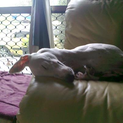 My girl's all time favourite thing is a tad embarrassing. She ADORES having her inner thighs rubbed. She has been know to fling herself against visitors on the lounge (even ones she doesn't know) displaying all her worldly girly goods, looking at them lovingly hoping for a scratch in her favourite spot. If you can imagine a pied SBT in the same position as that last pic in Wobbly's avatar above then that is pretty much what she offers up but normally it will be across a strangers lap or propped up against their chest. And of course she wriggles and ungently guides your hands with her front paws so contact with her girly bits whilst trying to scratch her favourite spot is on the cards. Ewwww.