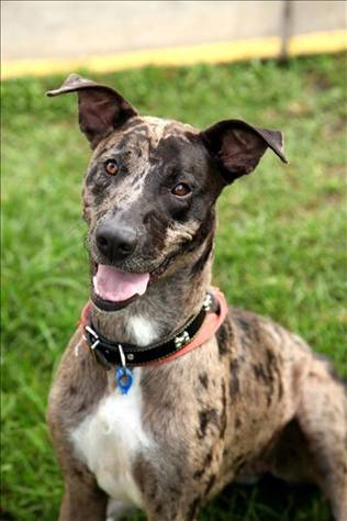 The new foster is a big and strong girl (around 25kgs) is approx. 2 years, and has had no lead training, so until I can get decent control on her I can't take her out for a walk, she is strong enough to literally pull me over. She was listed as a Koolie x, but my thoughts would be Dane x Bull Arab maybe (or Dane x something).