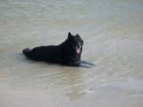 Fleming loves the water and doesn't care if it's ocean, creek or muddy puddle. He & Tess used to have a great time when we went to the beach - she'd chase a toy, and Fleming would chase her !! Until he tired out then he's just wallow in the shallows :)